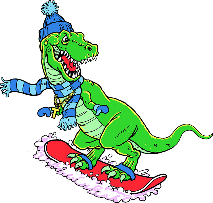 Tyrannosnorus rex, better known as Sno-Rex, may not have the longest arms, but he doesn’t let that stop him from shredding the gnar. He has some of the best looking handplants and grabs out there, when he’s able to reach. Just don’t ask him to do any push-ups.