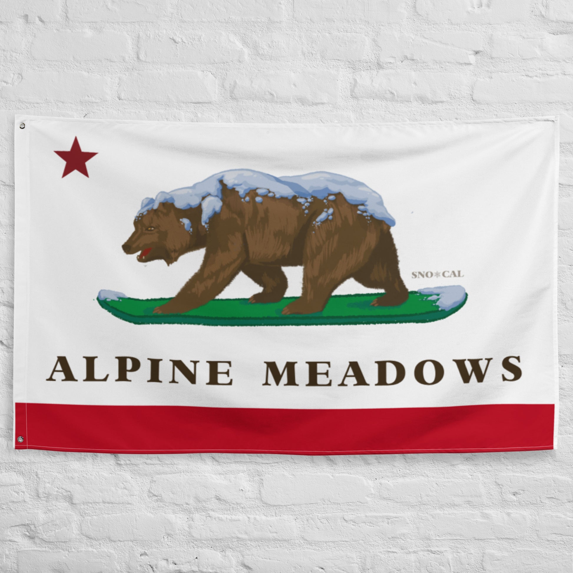 Alpine Meadows CA state style flag. Looks great in your garage, fun room or out on your house. The flag won’t crease or shrink thanks to the polyester material and will last a long time.