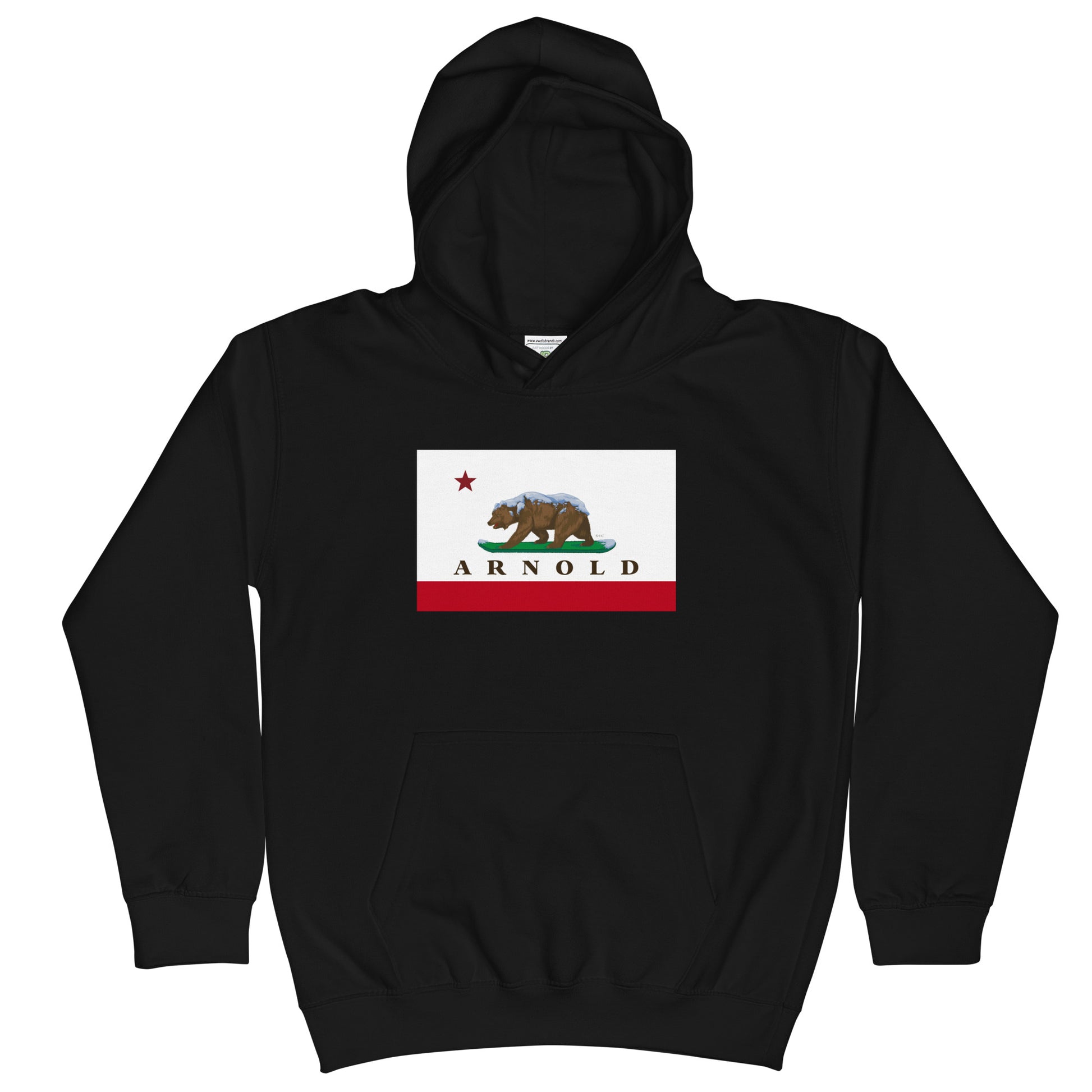 Soft, warm, comfy CA flag Arnold Kids hoodie. Arnold CA kids hoodie.