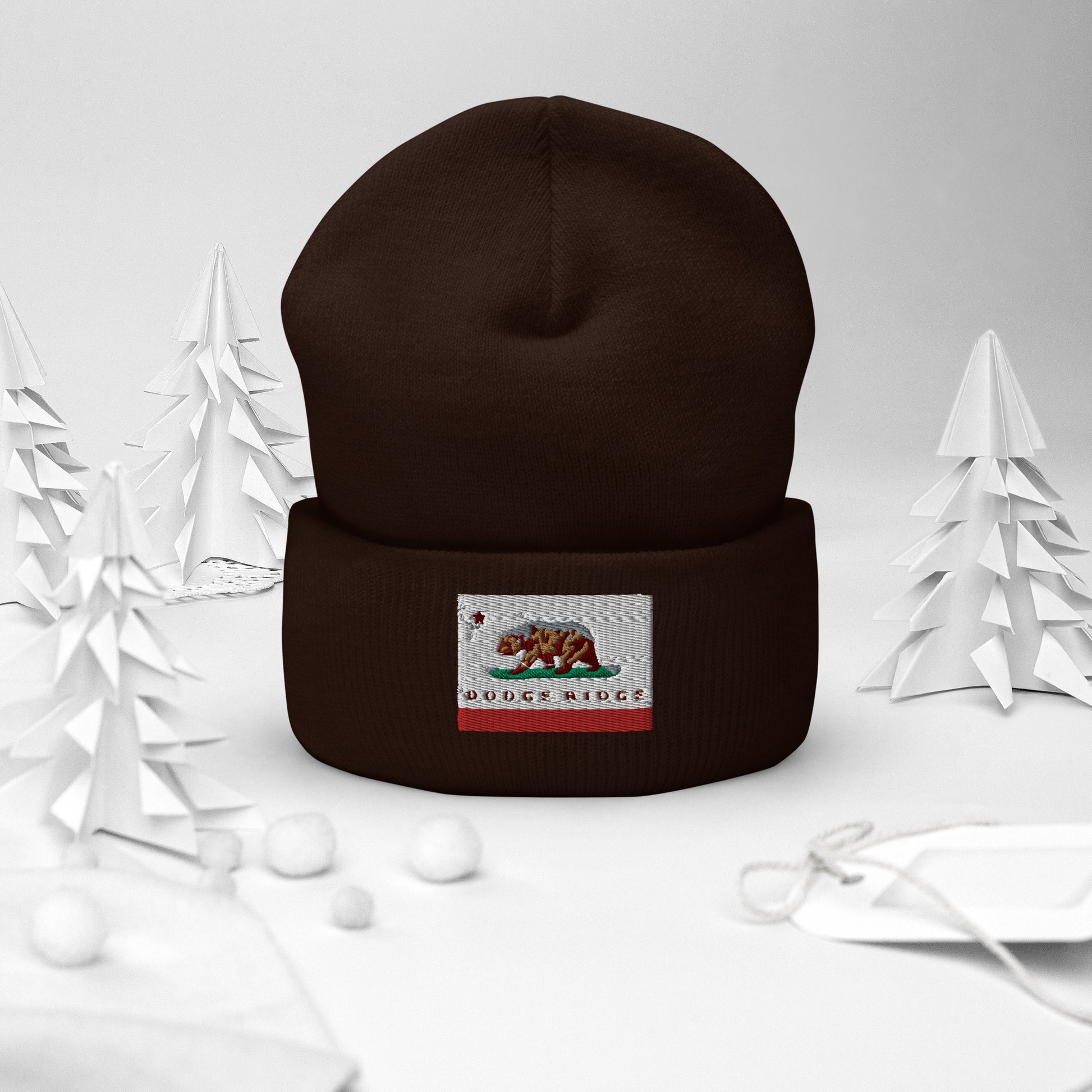 A snug, warm form-fitting beanie. CA flag with Dodge Ridge lettering.
