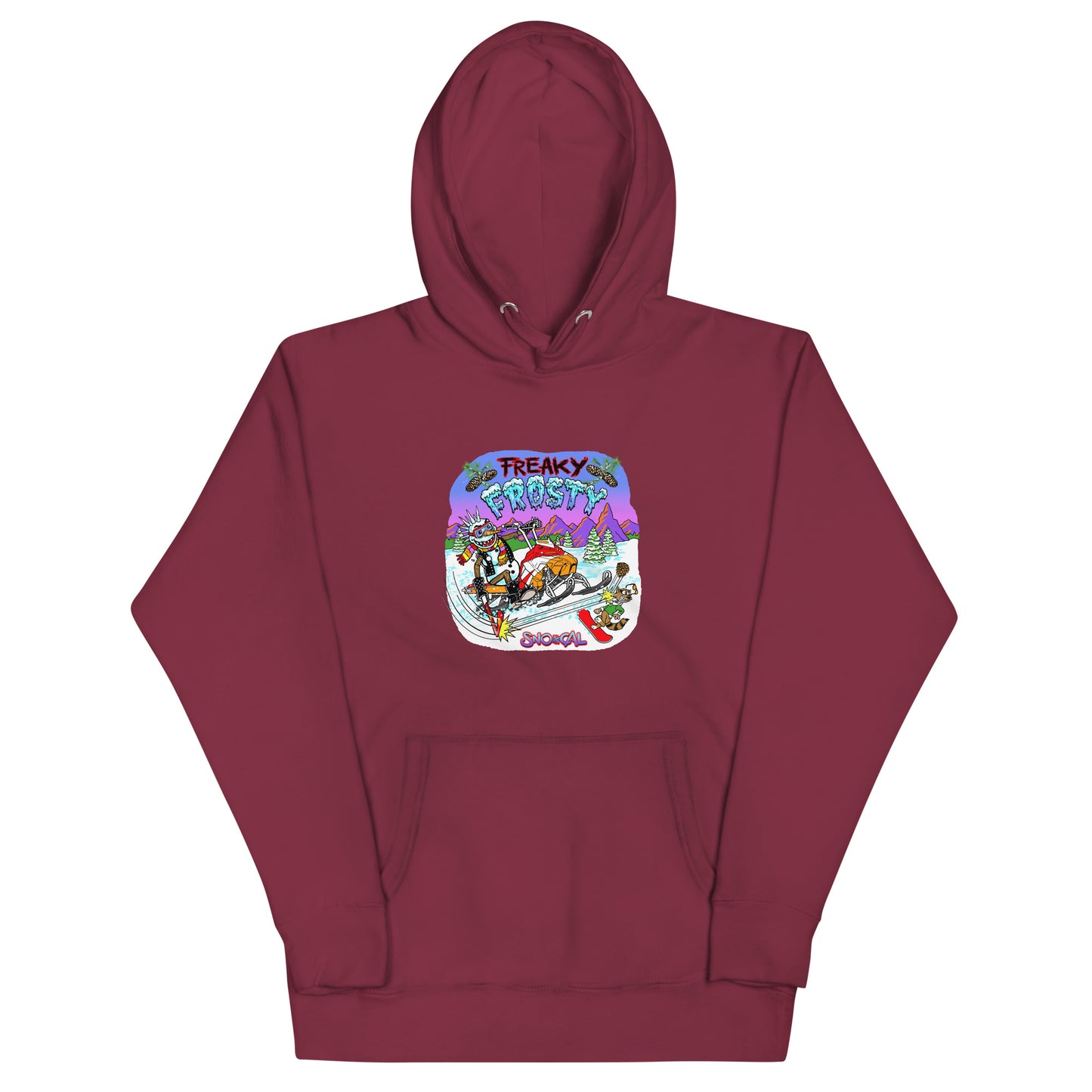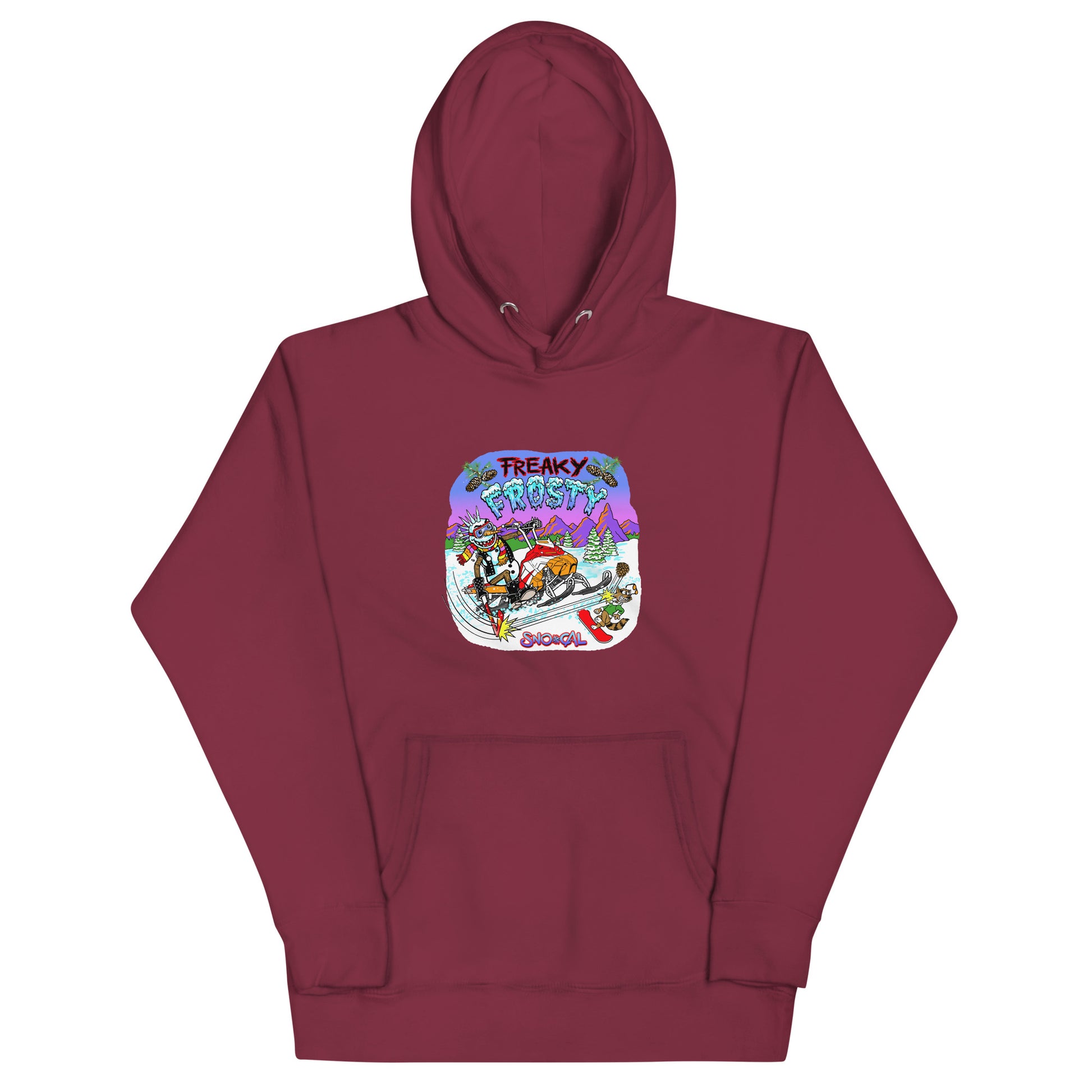 The softest hoodie you'll ever own, comes with our newest character design, Freaky Frosty, from amazing artist Steve Nazar.. You'll love wearing this classic hoodie with a convenient pouch pocket and warm hood for chilly evenings.