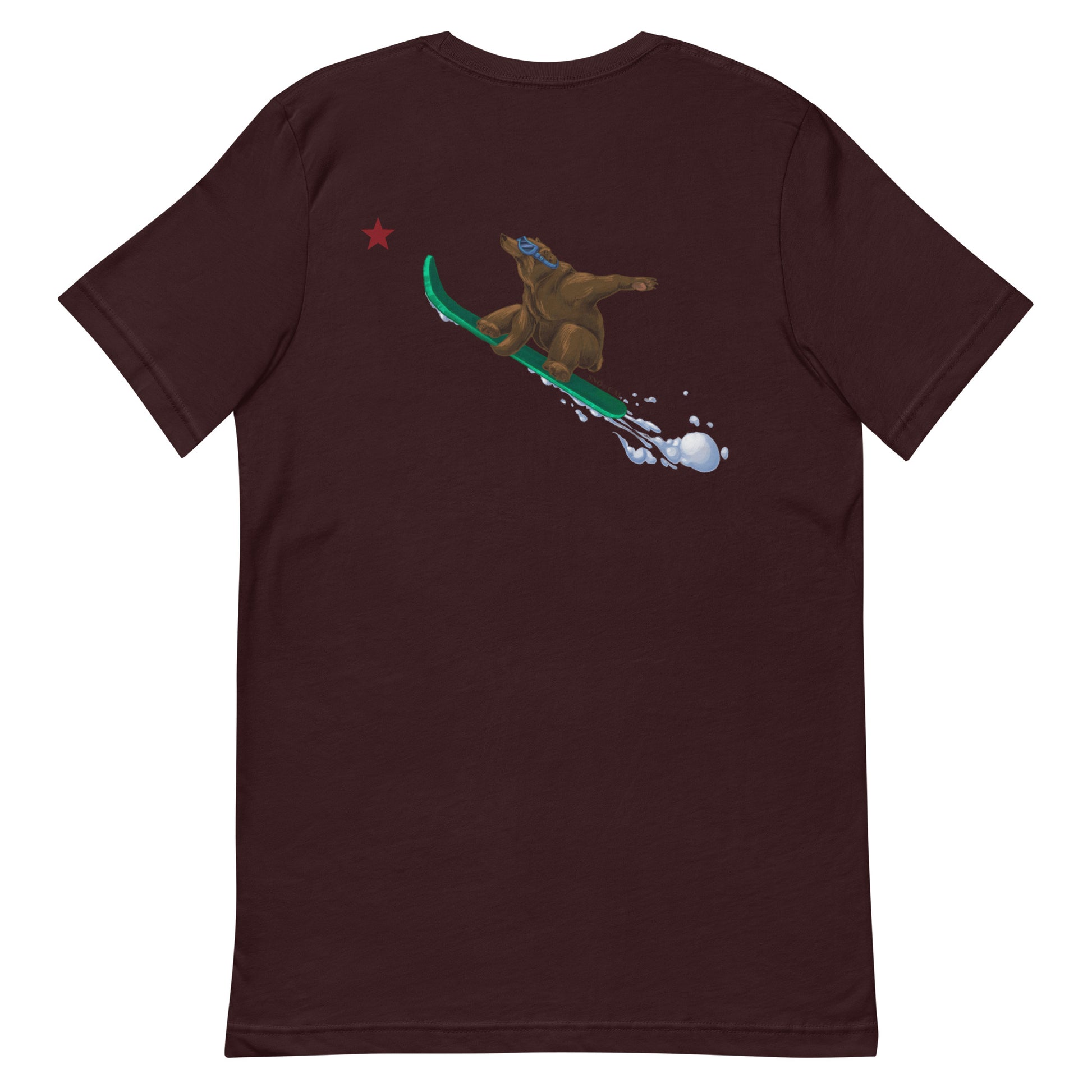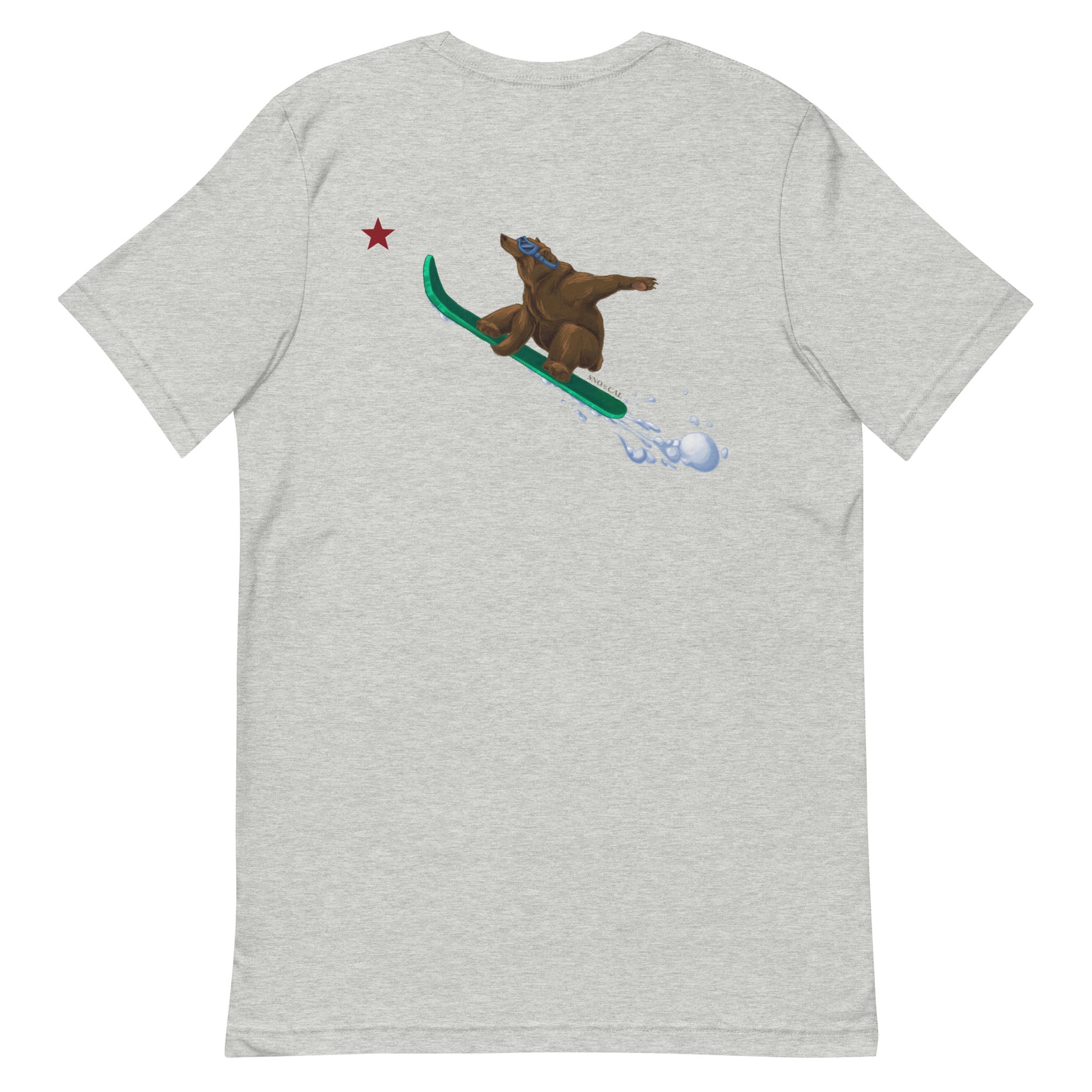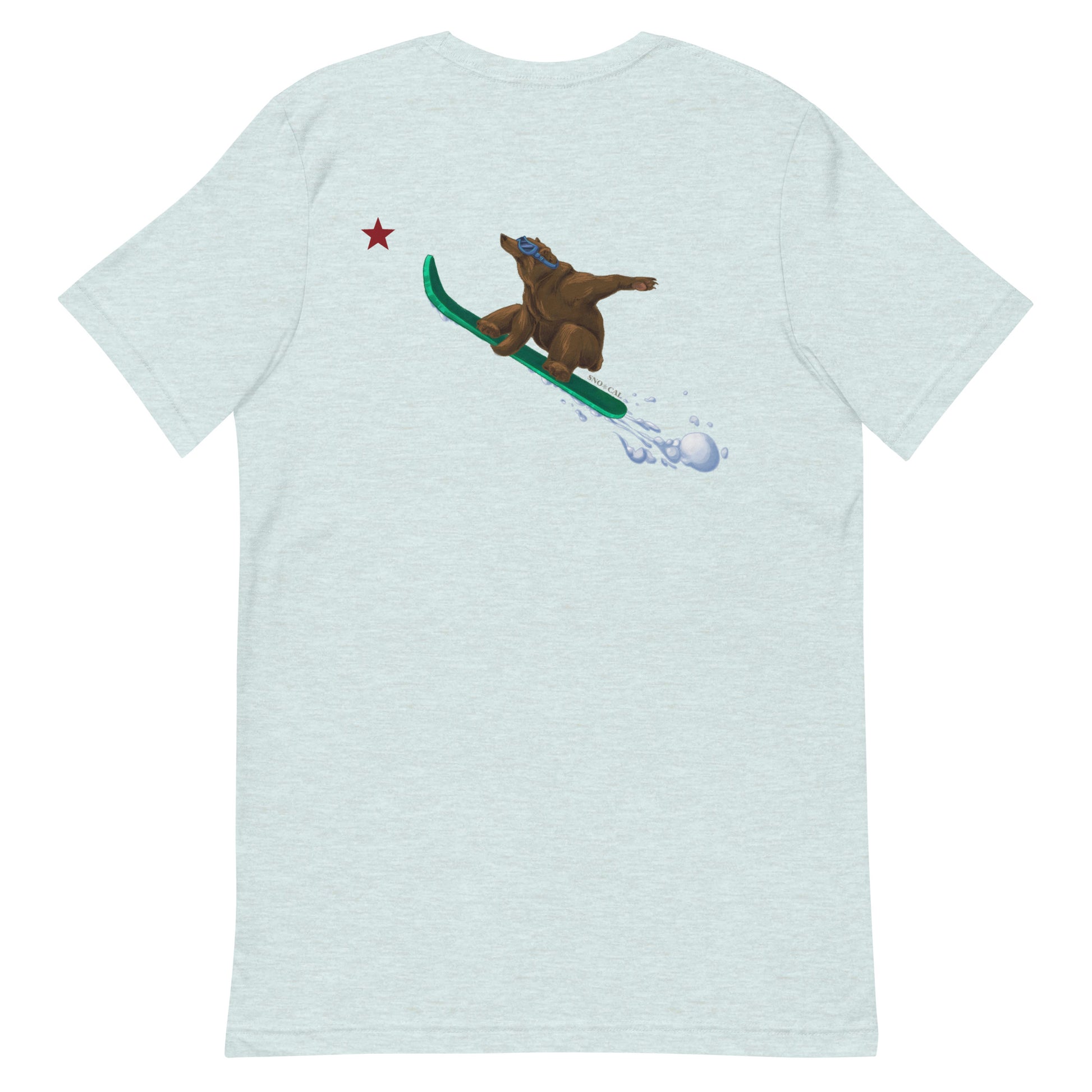 Lightweight, super soft tee with Goldie the Grizzly chillin on the front and getting air on the back.