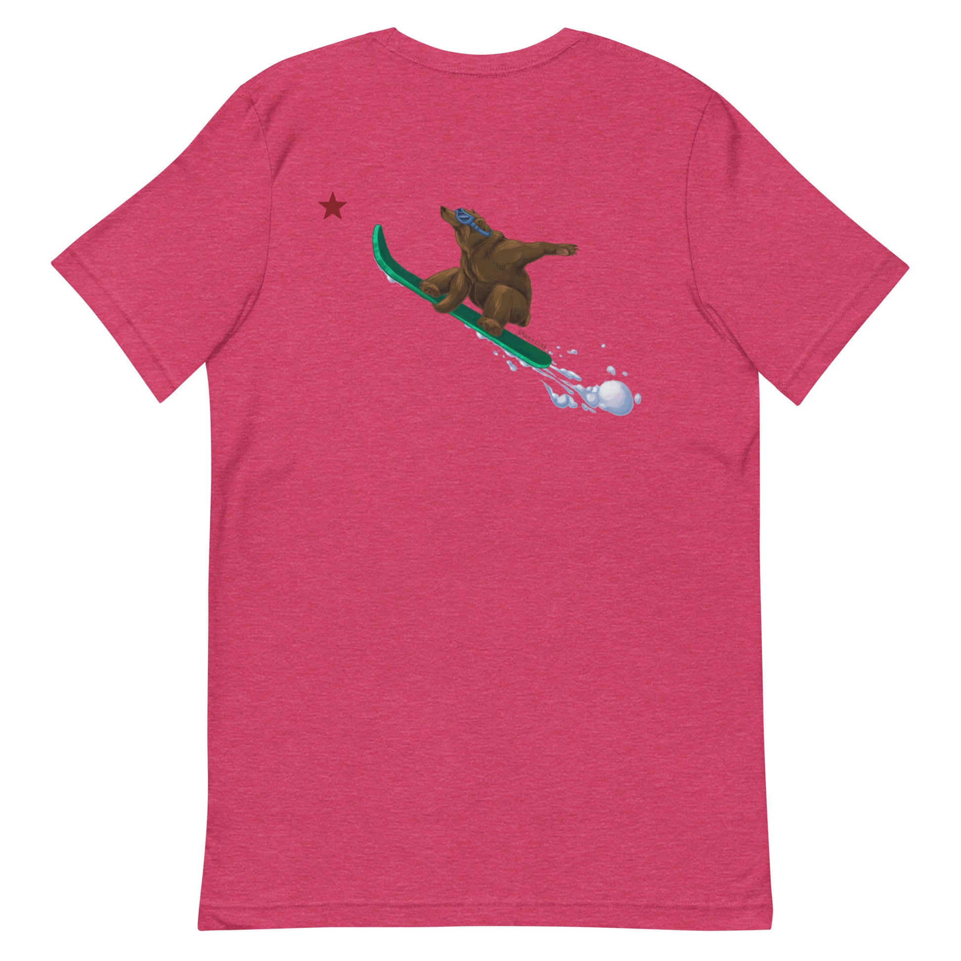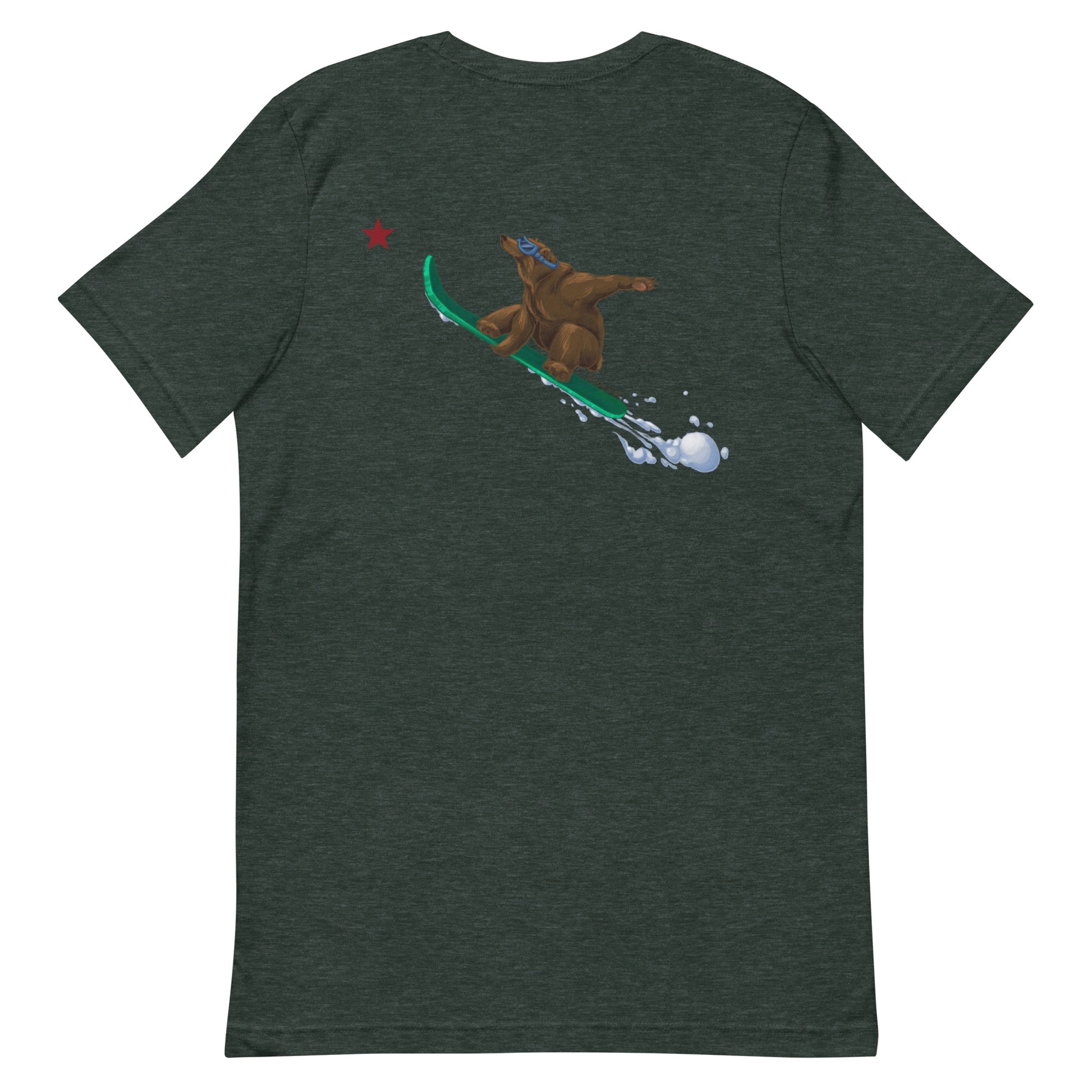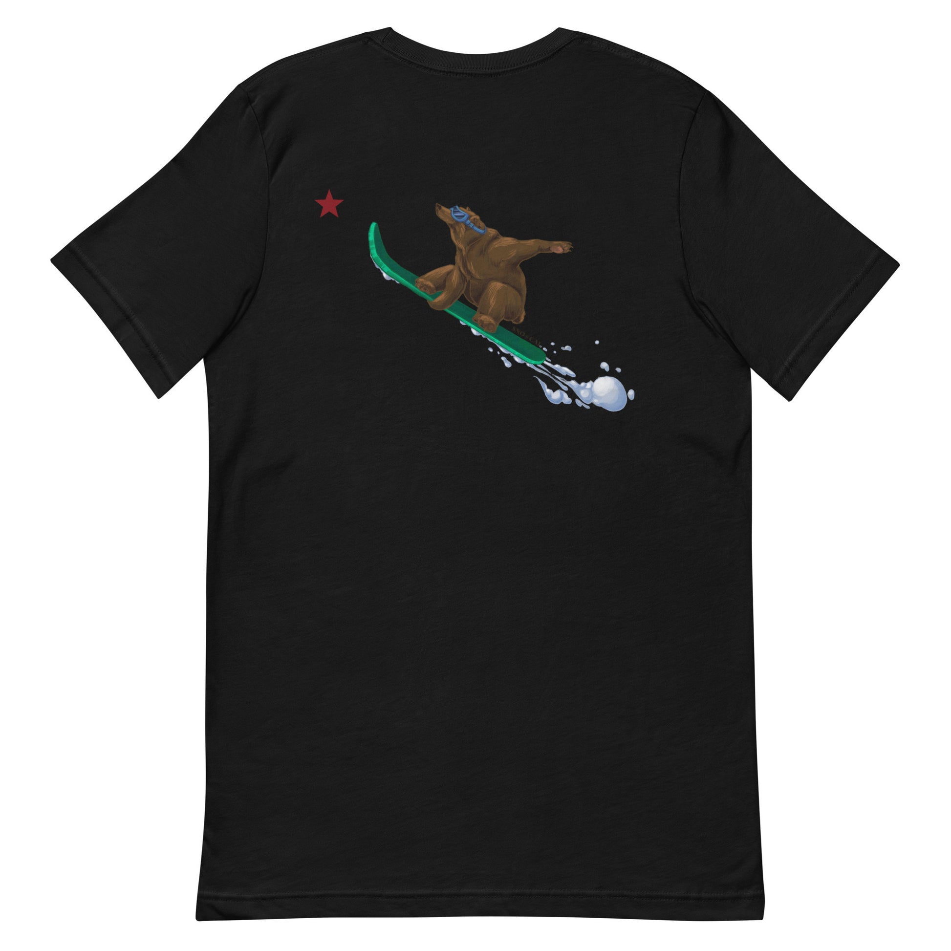 Lightweight, super soft tee with Goldie the Grizzly chillin on the front and getting air on the back.