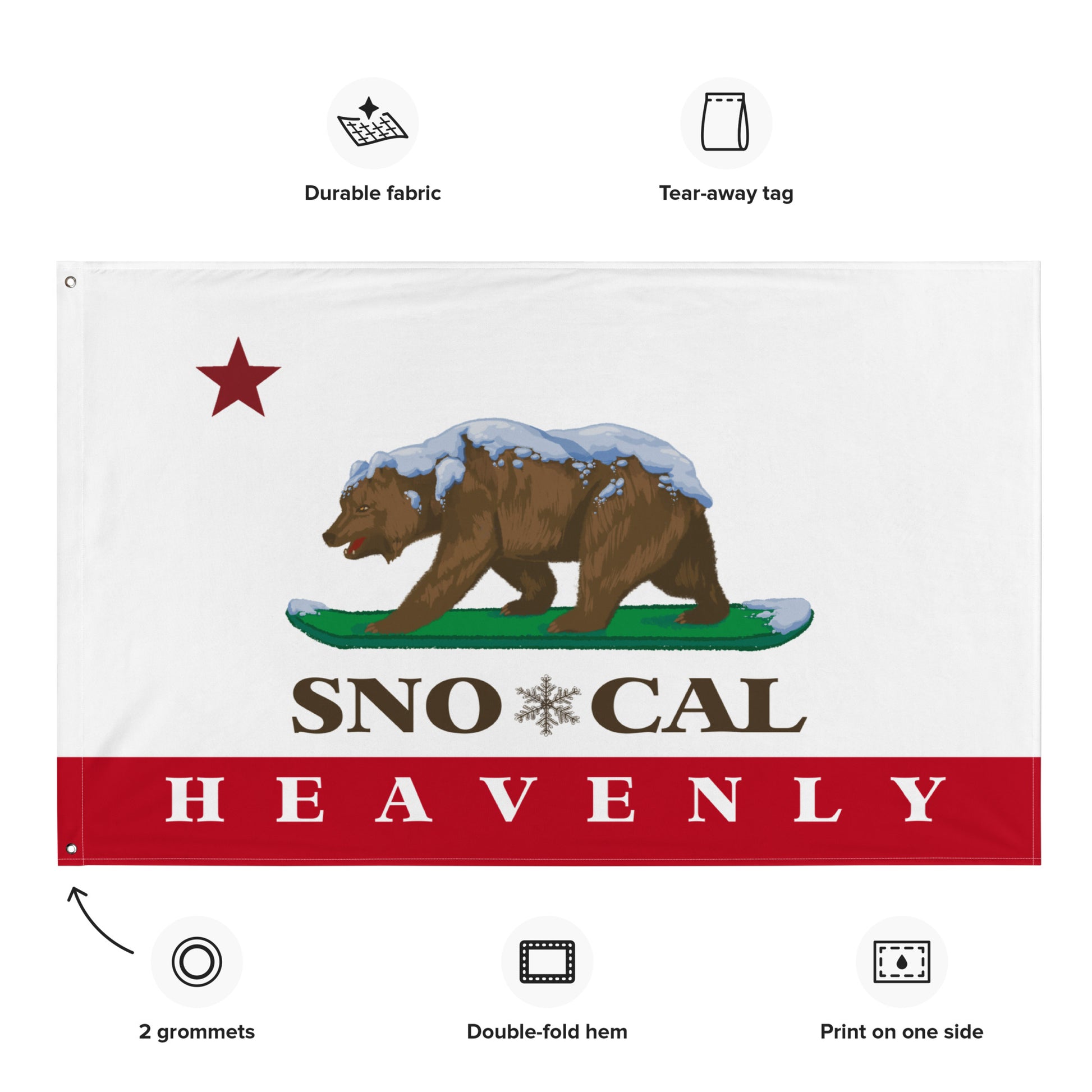 Heavenly Sno*Cal Flag that won’t crease or shrink thanks to the polyester material and will last.
