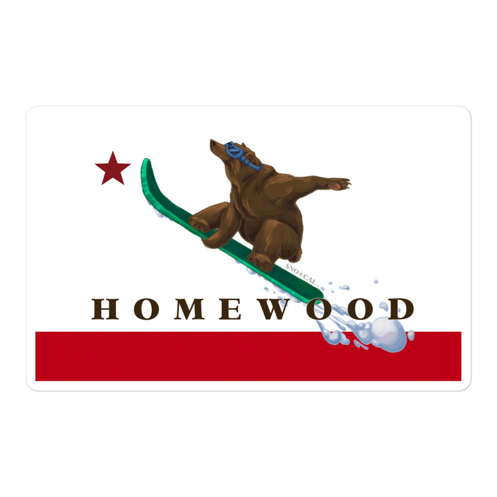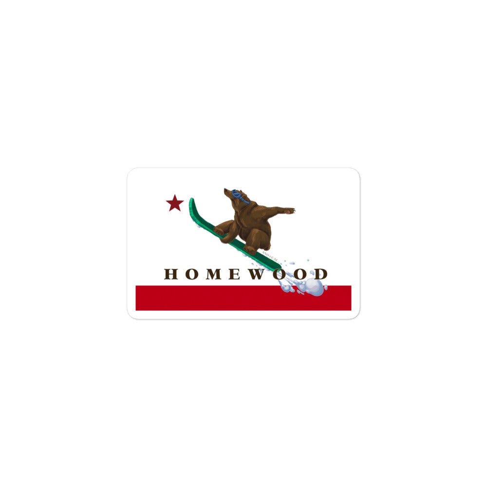 Homewood CA Flag Snowboard Sticker, perfect for your helmet or car.