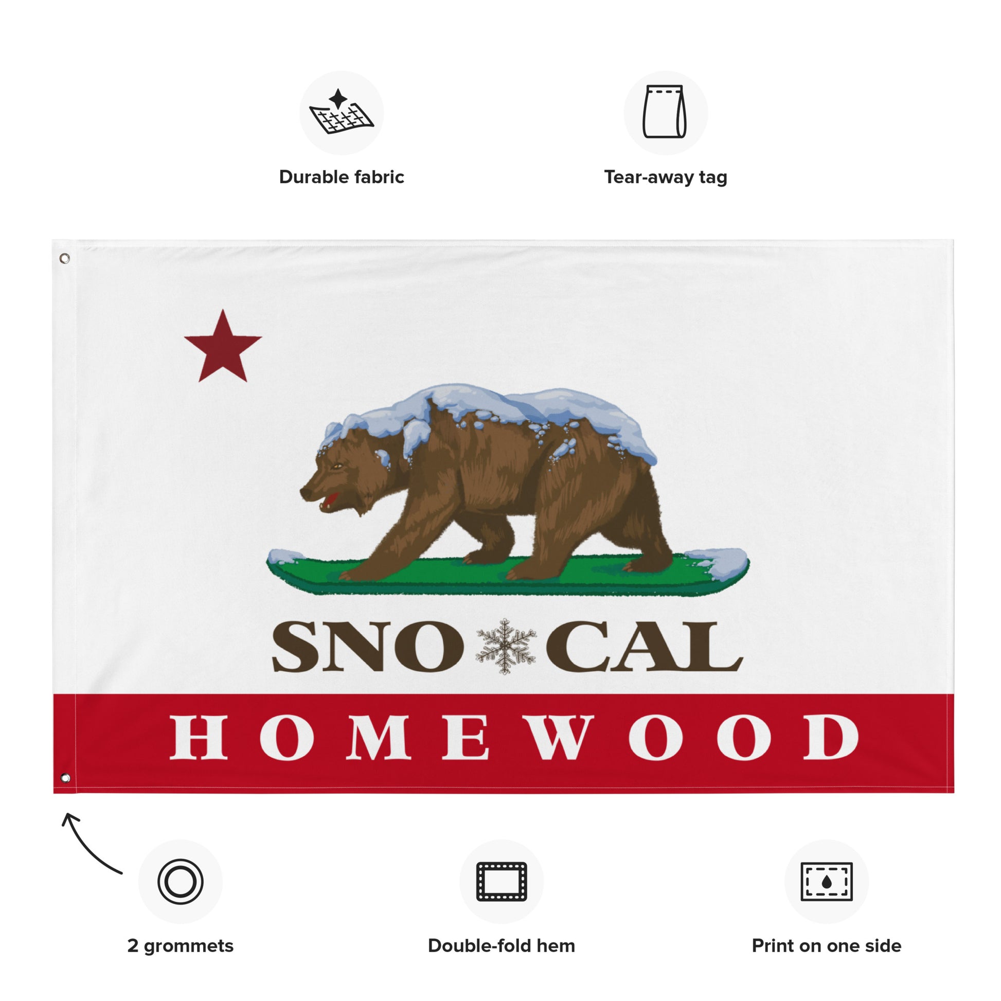 Homewood Sno*Cal flag. The flag won’t crease or shrink thanks to the polyester material and will last a long time.