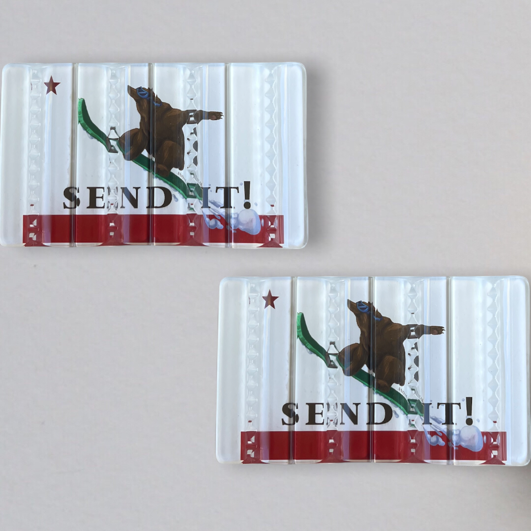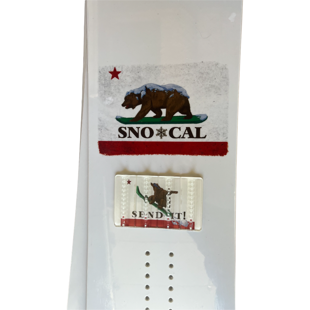 Every board needs a stomp pad! This sturdy design will help you keep your grip as you get off the lift. Designed with our Goldie the Grizzly sending it on the CA flag.