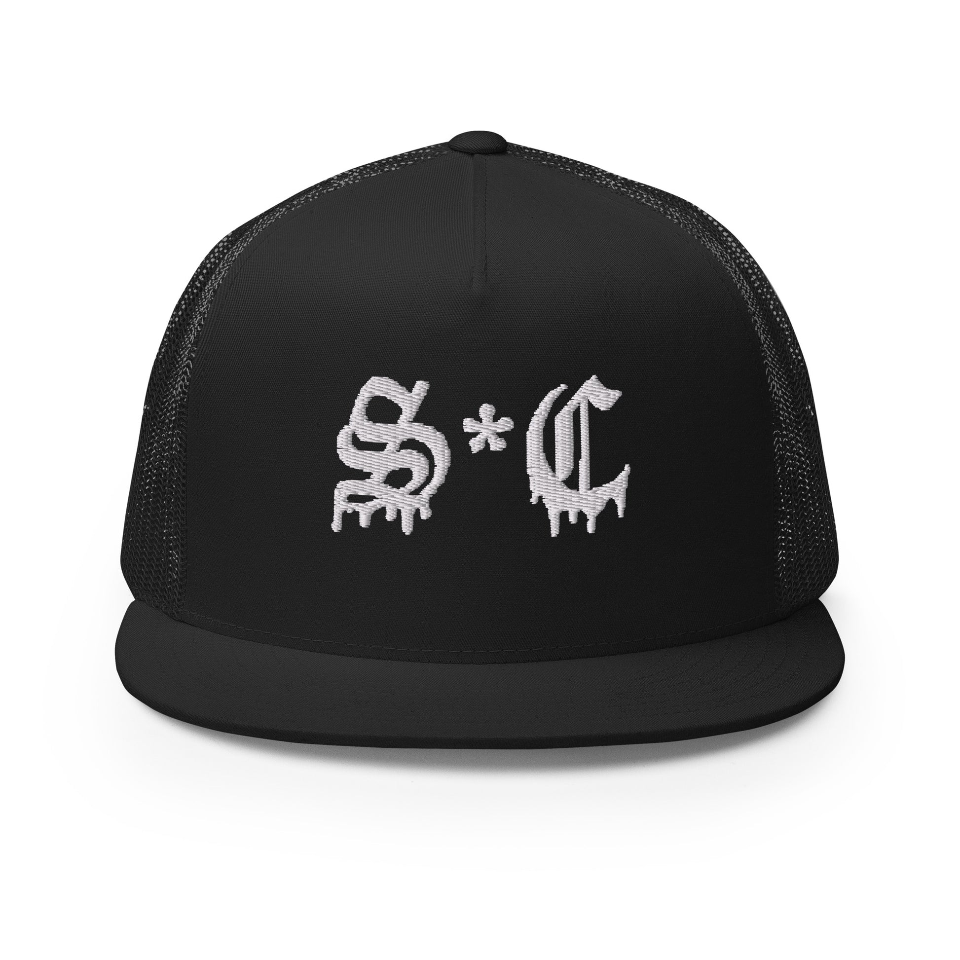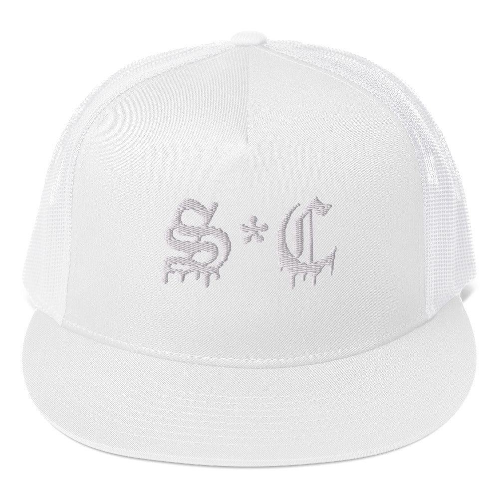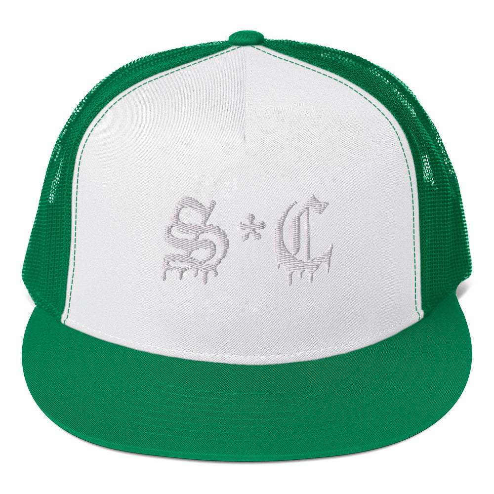 Classic trucker style hat with S*C Old English lettering on a cool fabric blend.