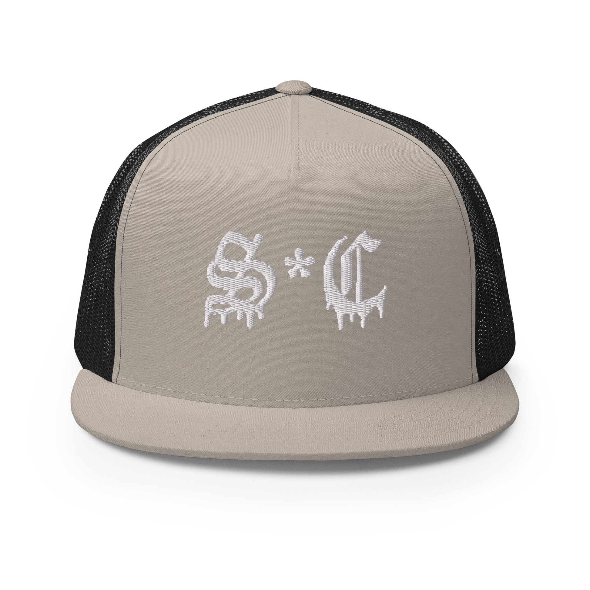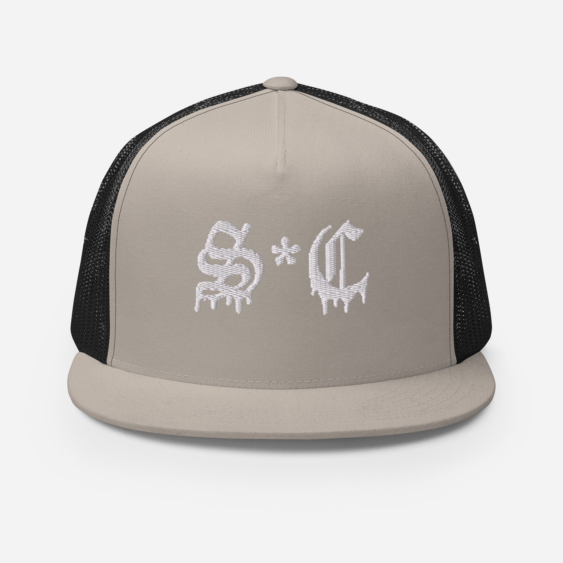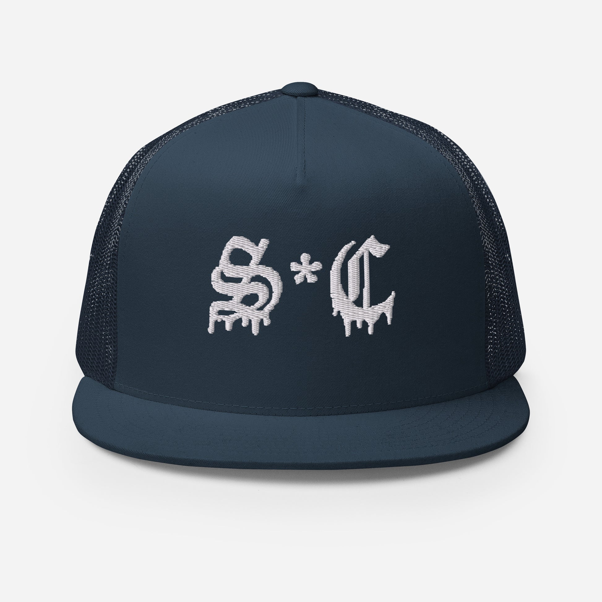 Classic trucker style hat with S*C Old English lettering on a cool fabric blend.