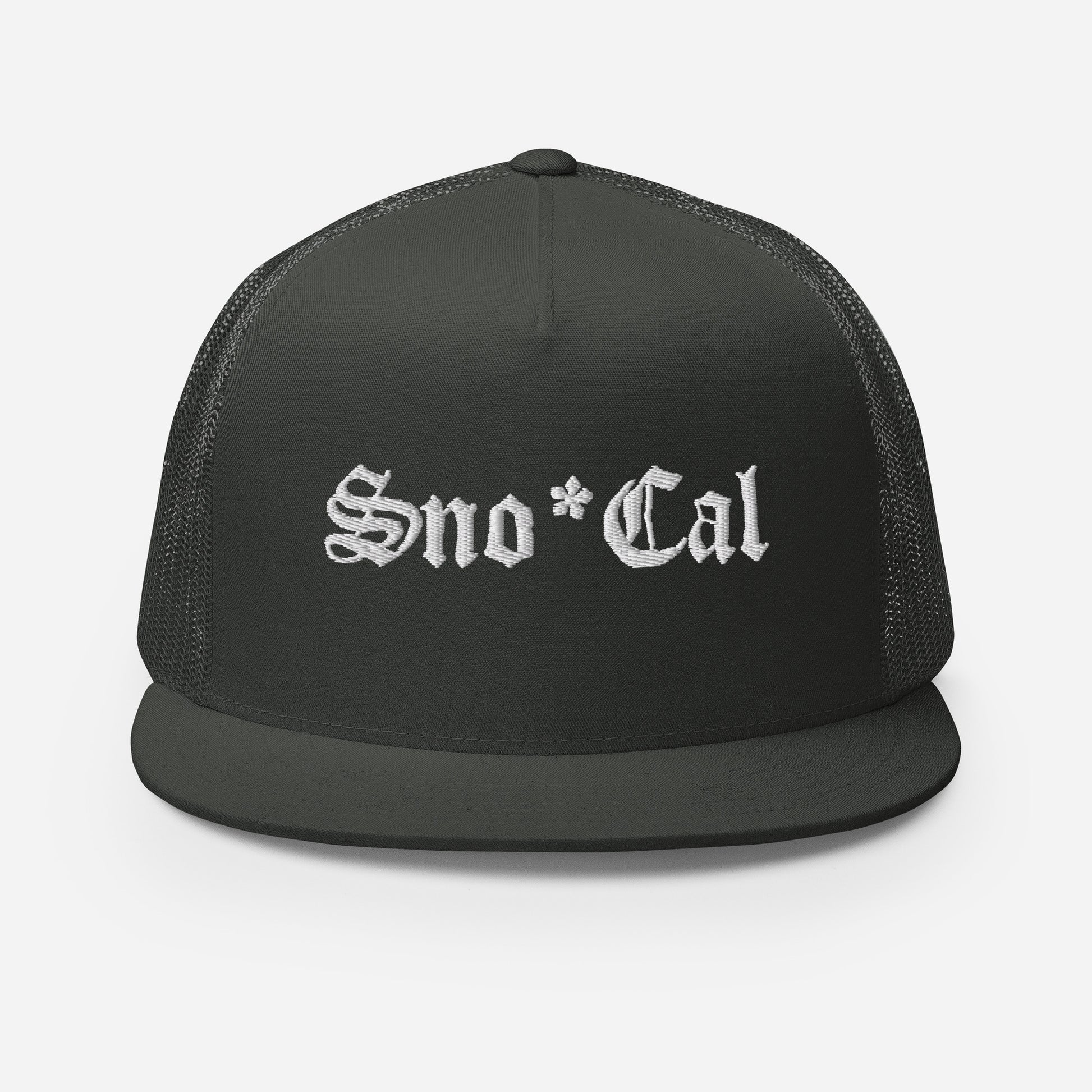 Sno*Cal trucker hat with classic old English lettering on a cool fabric 5-panel blend.