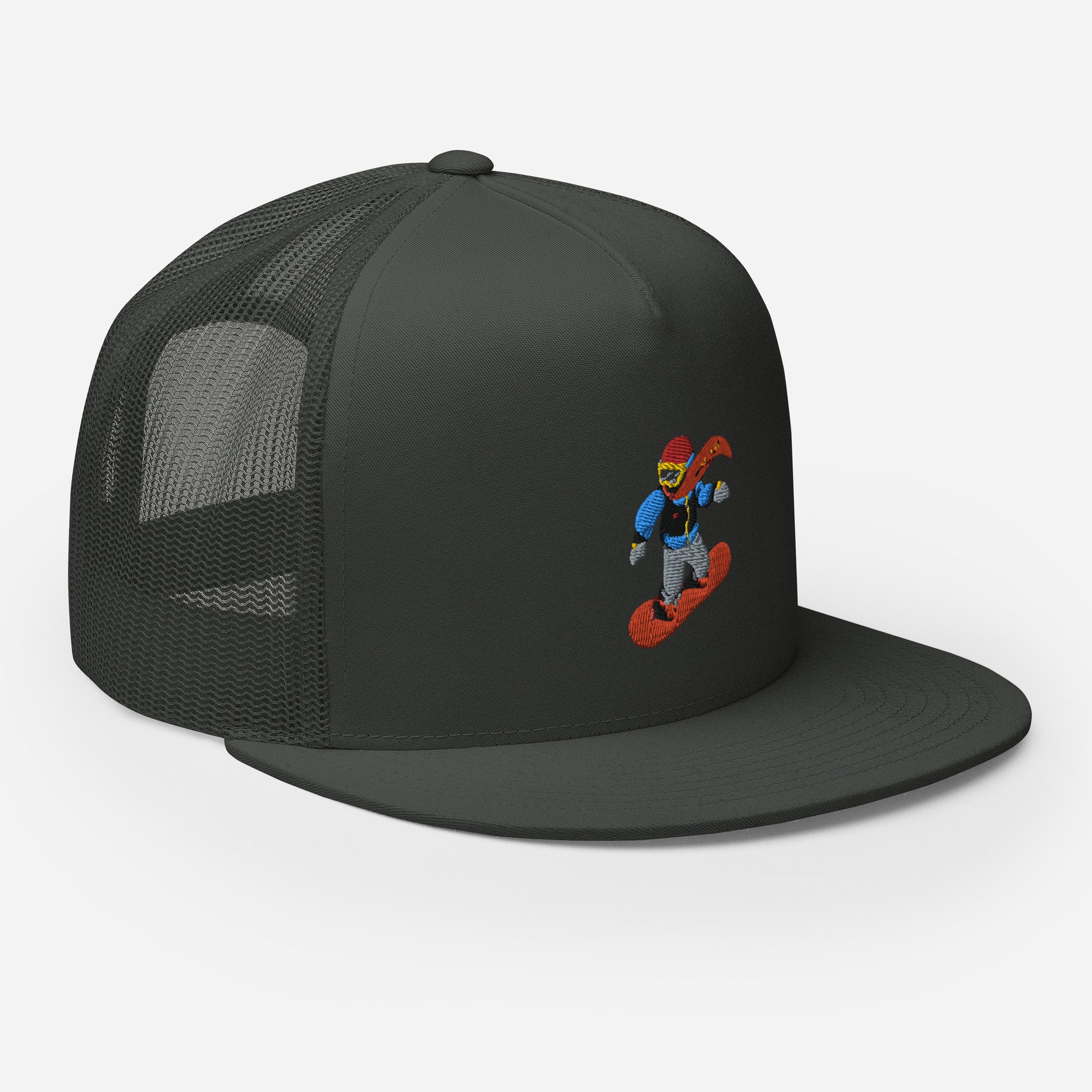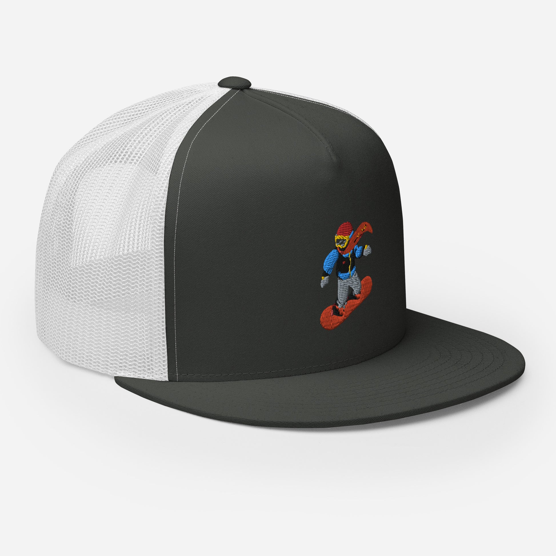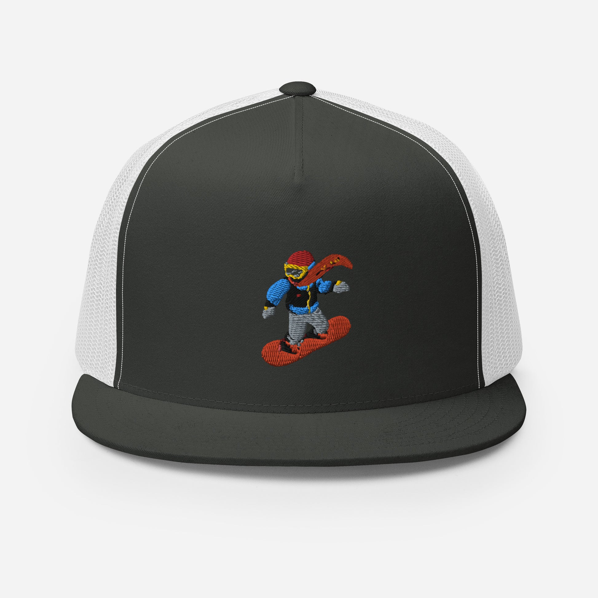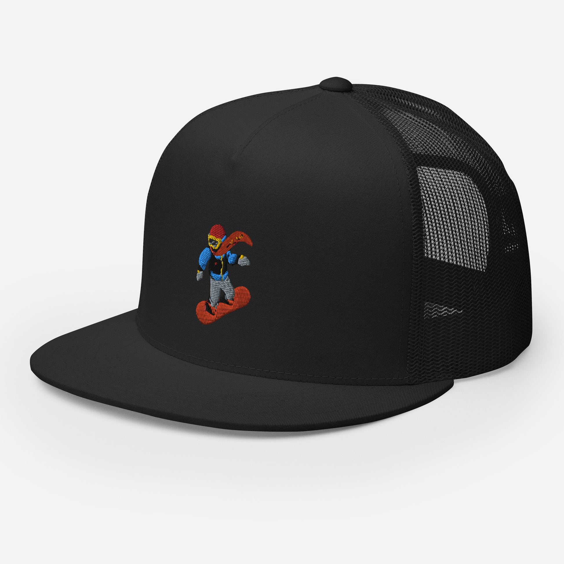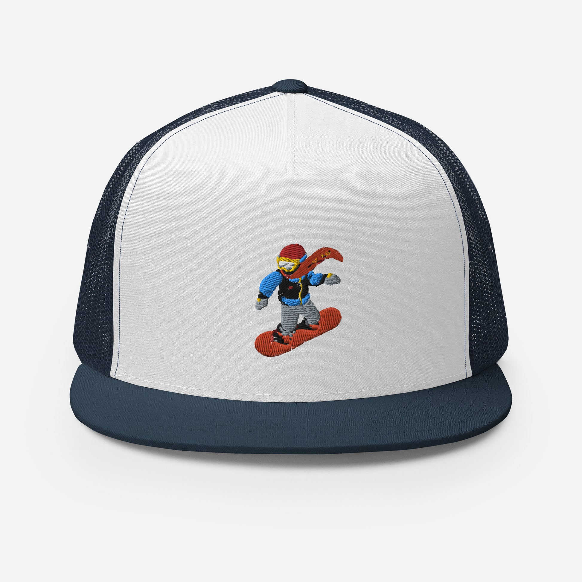Our own emoji inspired snomoji on this trucker cap with a cool fabric blend.