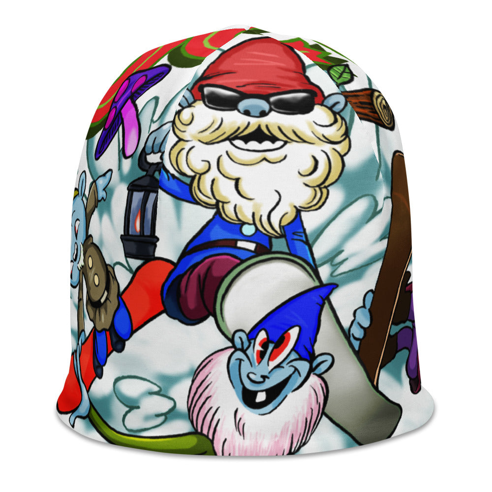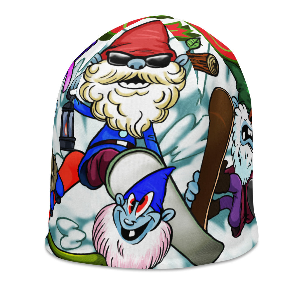 Double-layered, soft, and oh, so comfy all-over print beanie with the Sgnomes!